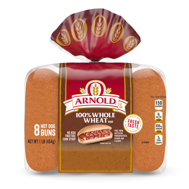 100% Whole Wheat Hot Dog Buns are baked with whole wheat, creating a soft yet hearty bun with a delicious tast. The perfect partner to the hot dog, theyre a great addition to your next BBQ.